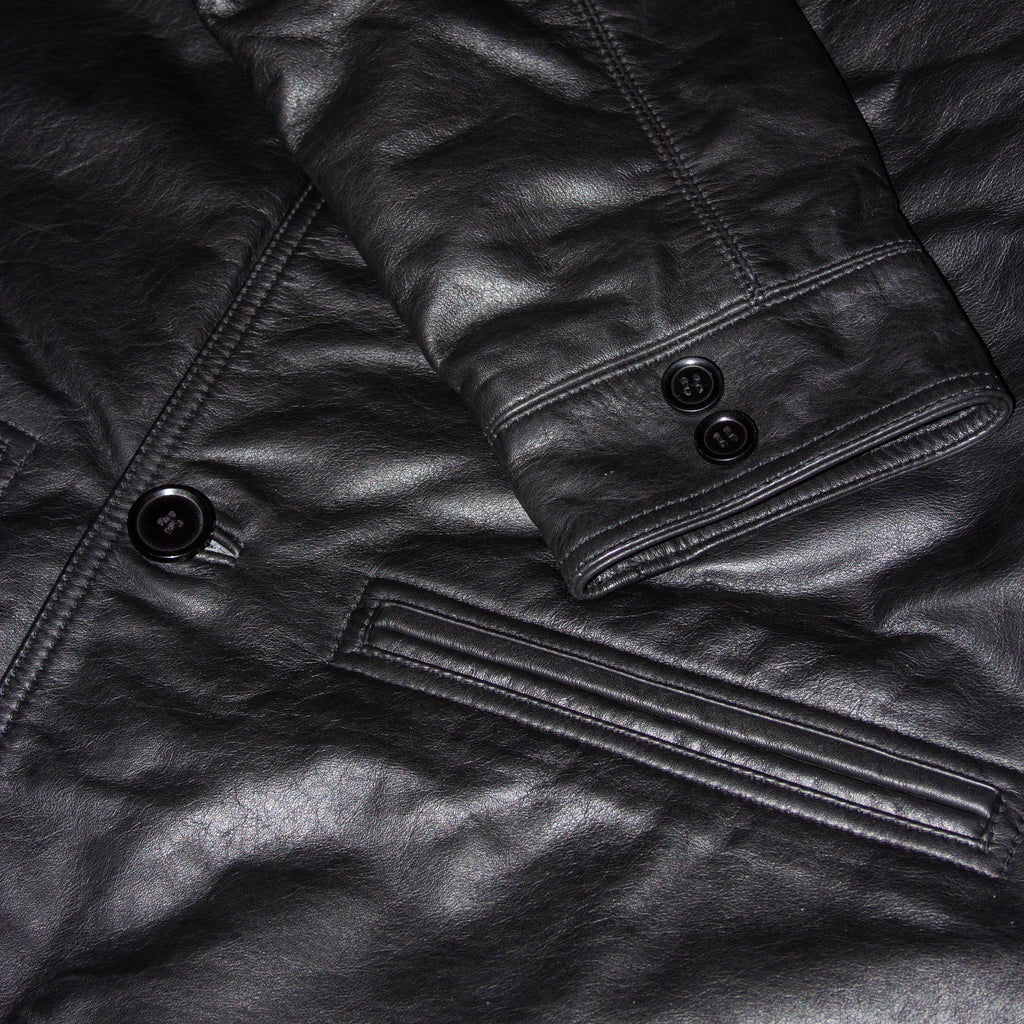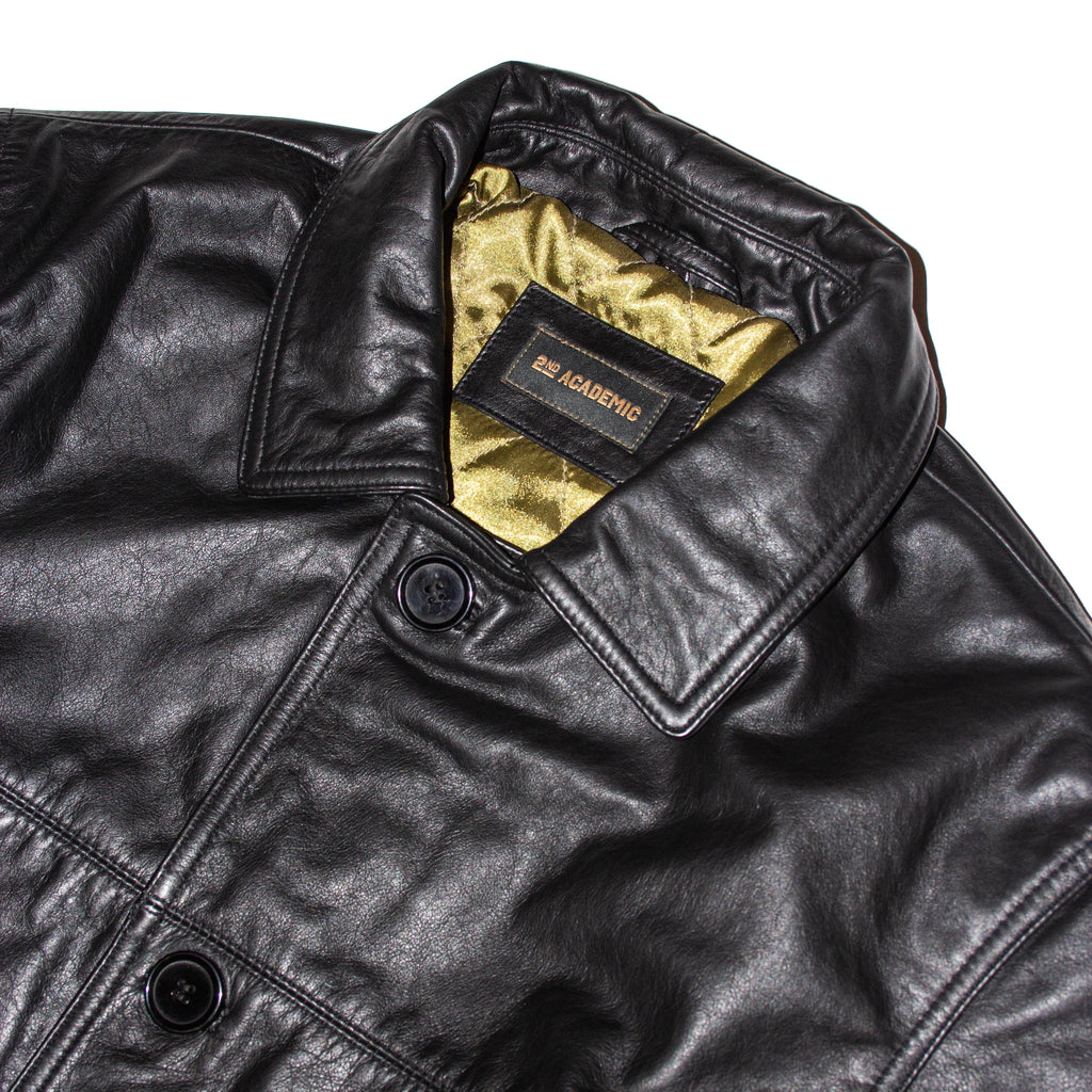 2nd Academic Made To Order Huey Leather Car Coat Black