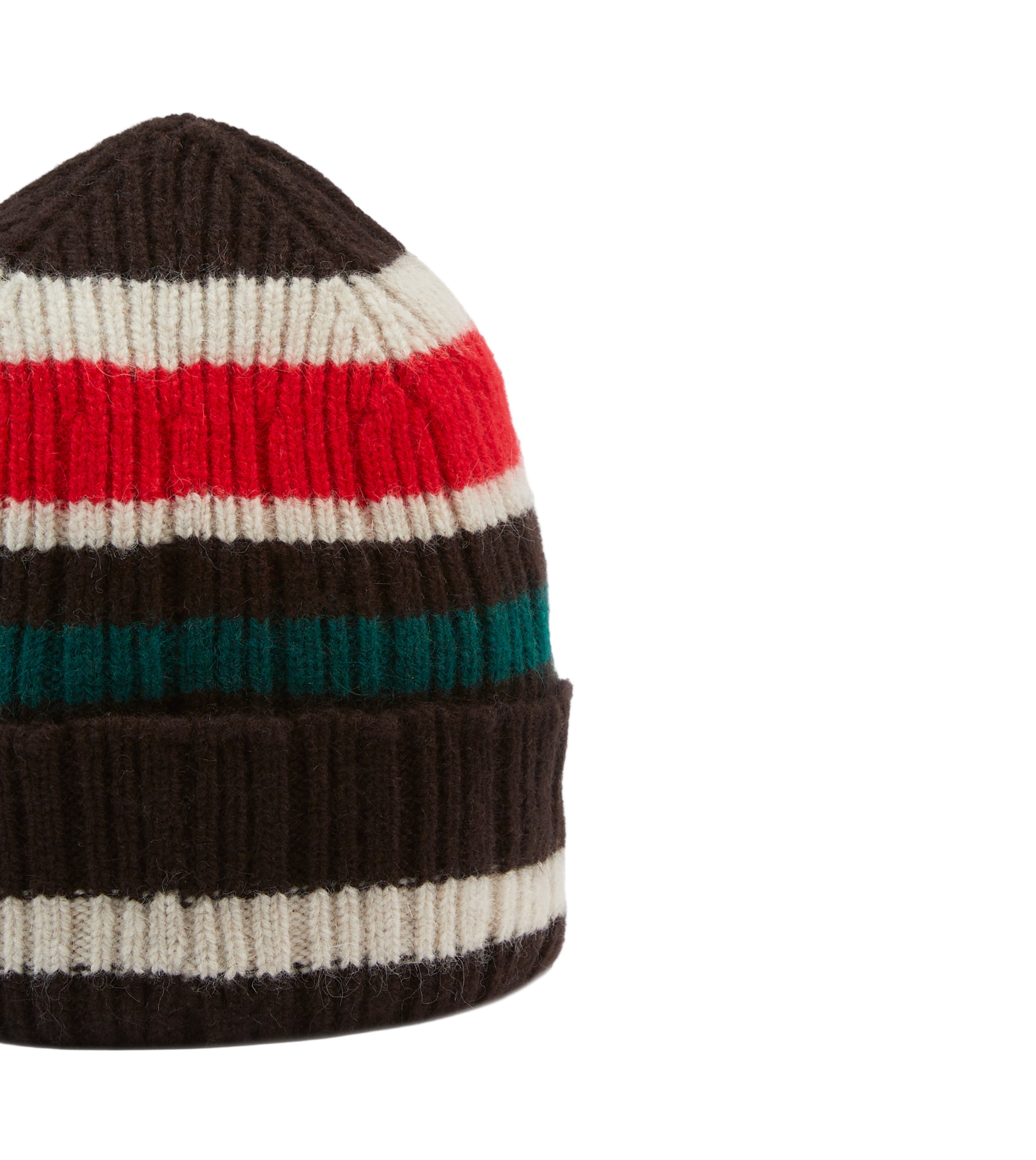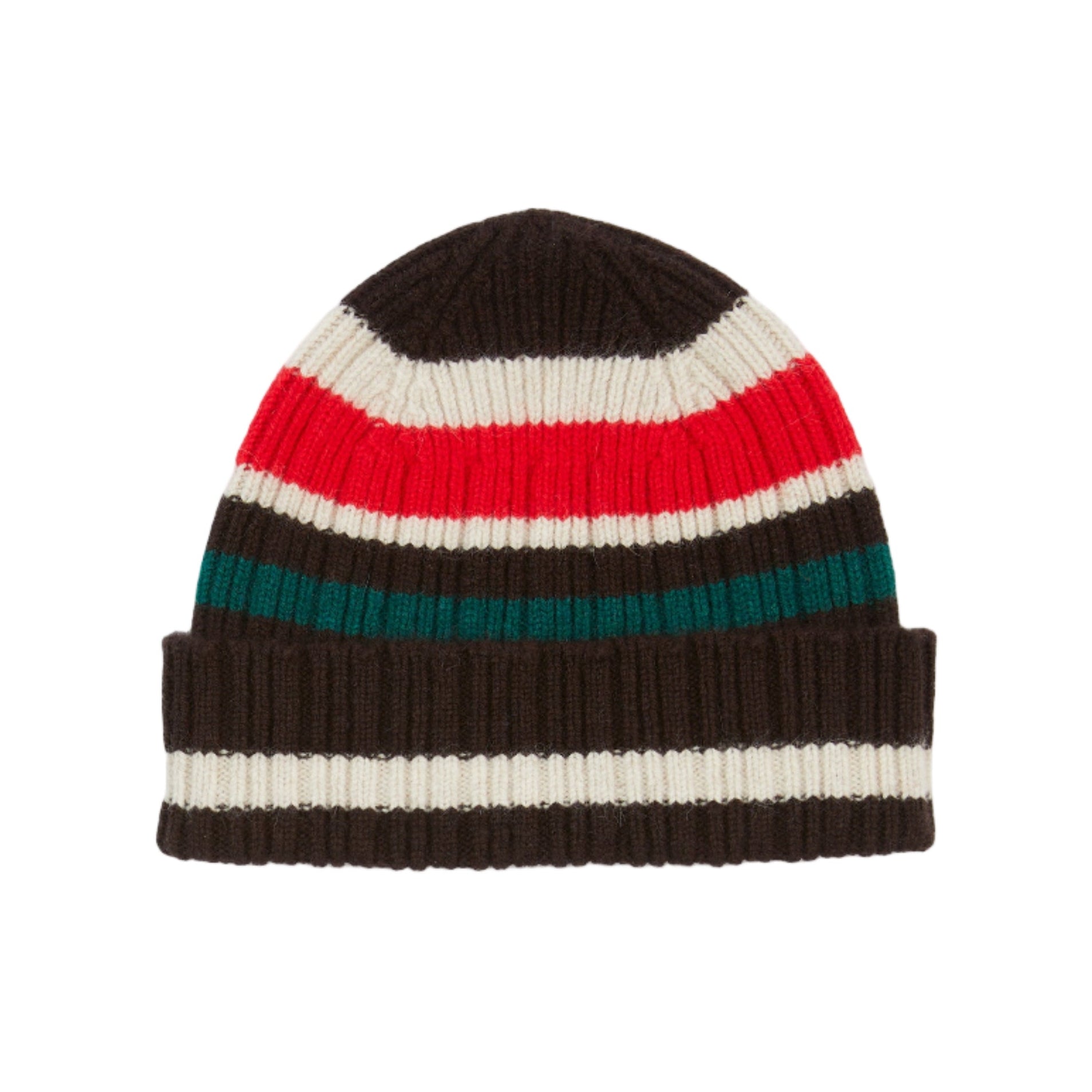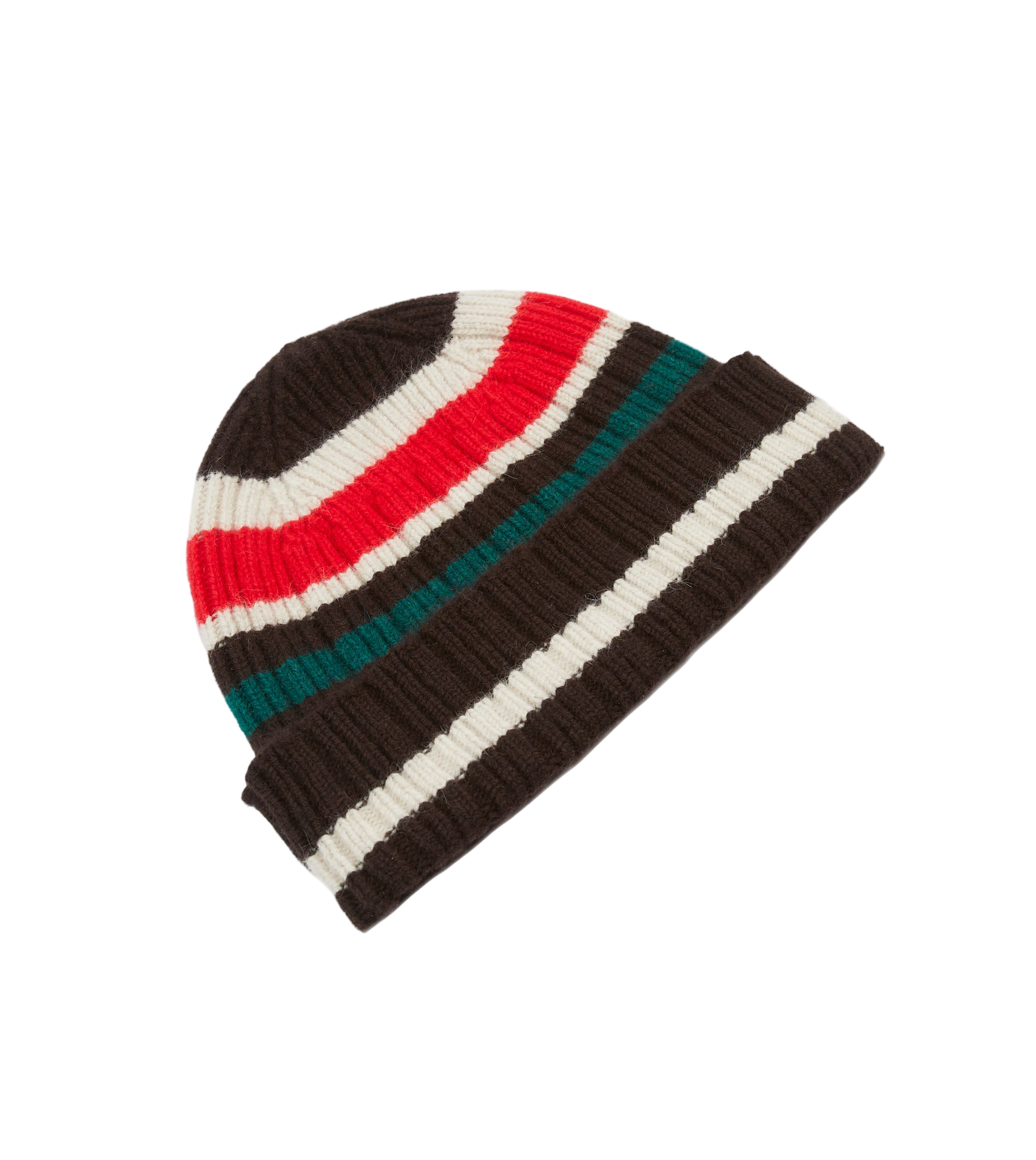 Drake's Striped Geelongora Beanie; Brown, Ecru & Red