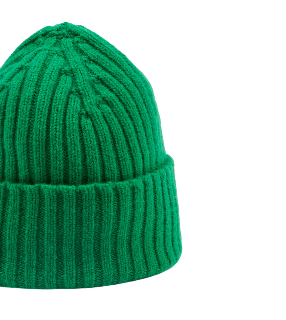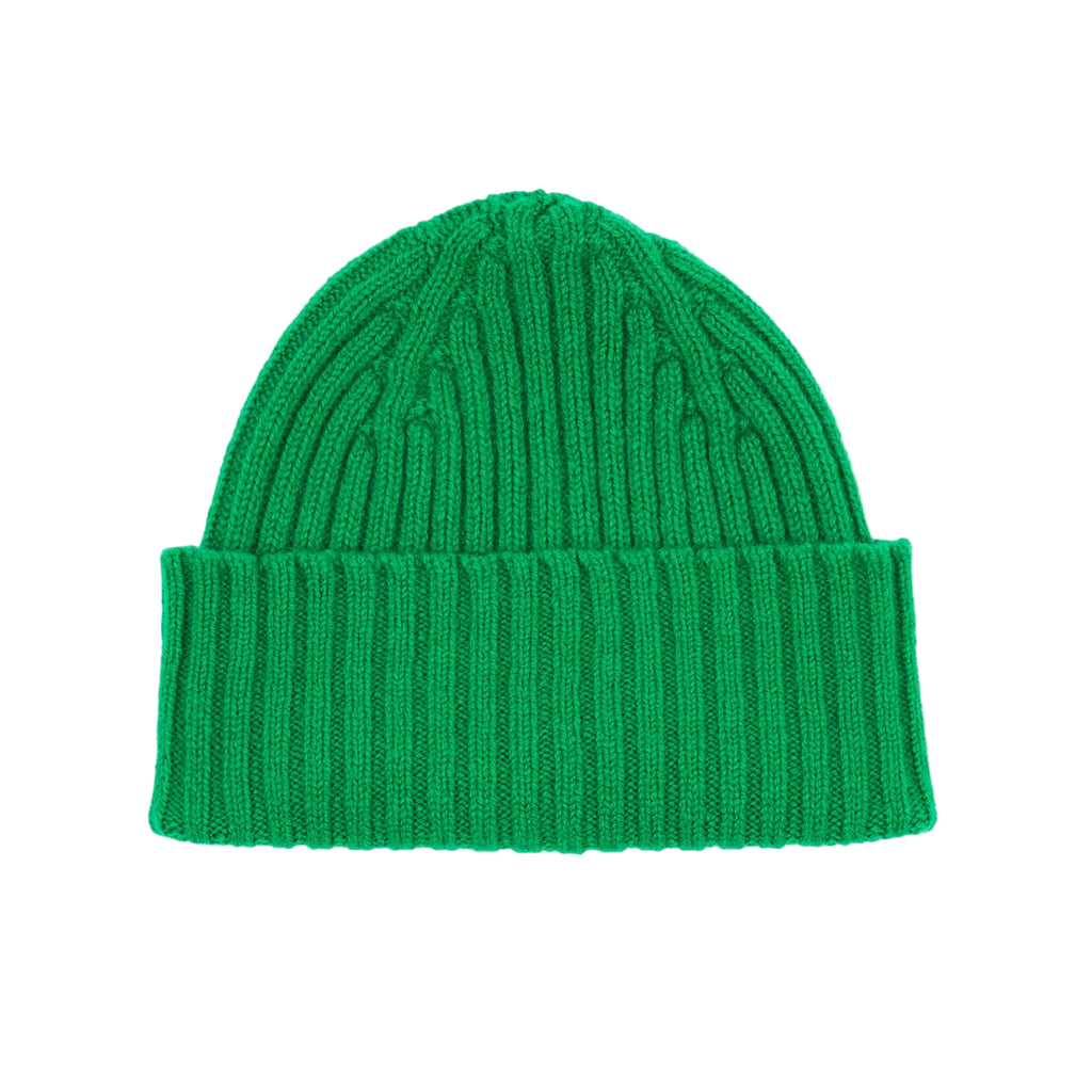 Drake's Lambswool Ribbed Knit Beanie Hat Green