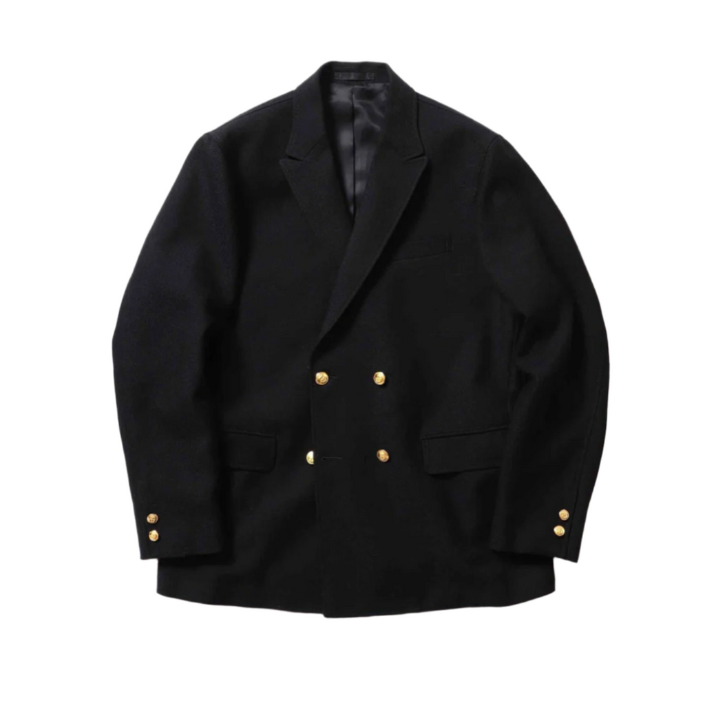 Beams Plus 4 Button Double Breasted Wool Blazer Navy
