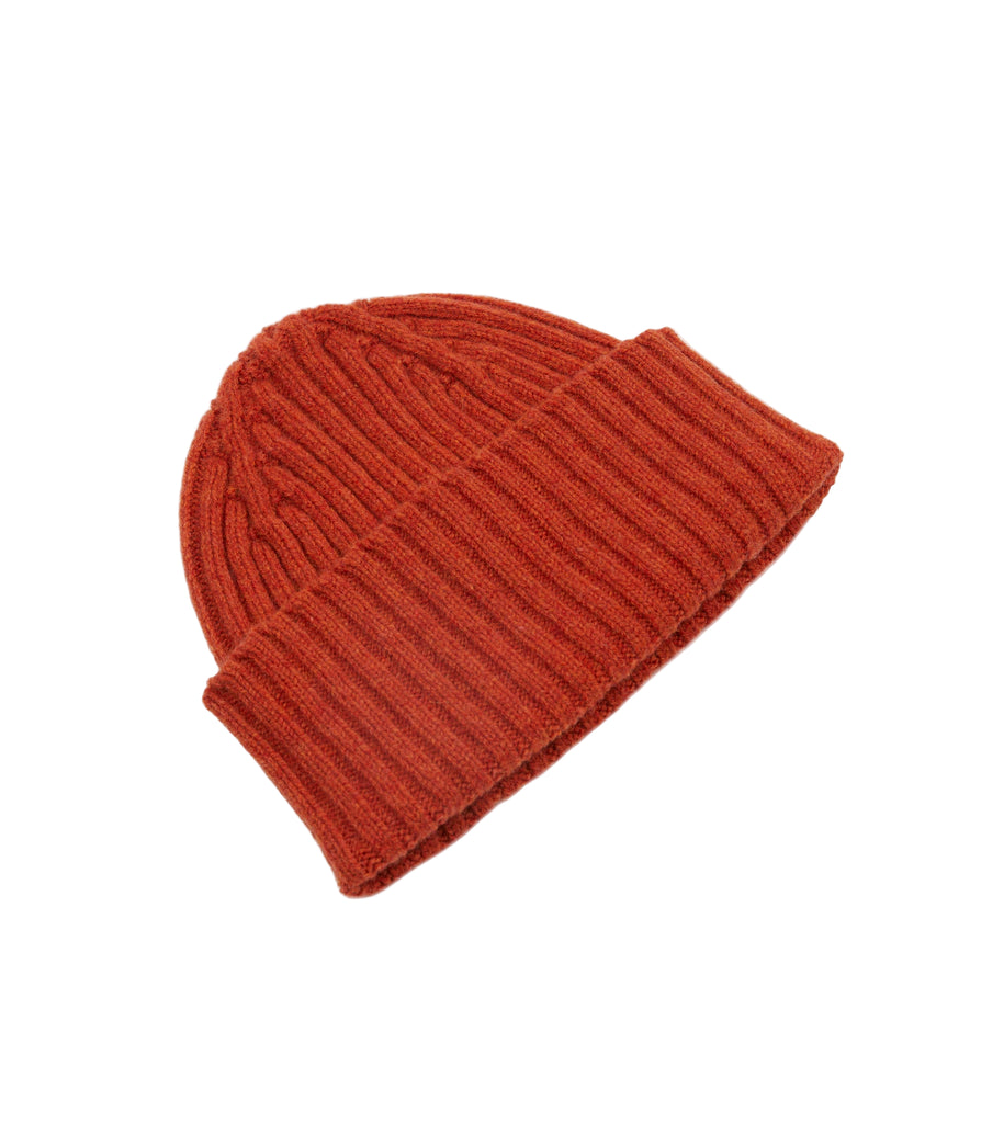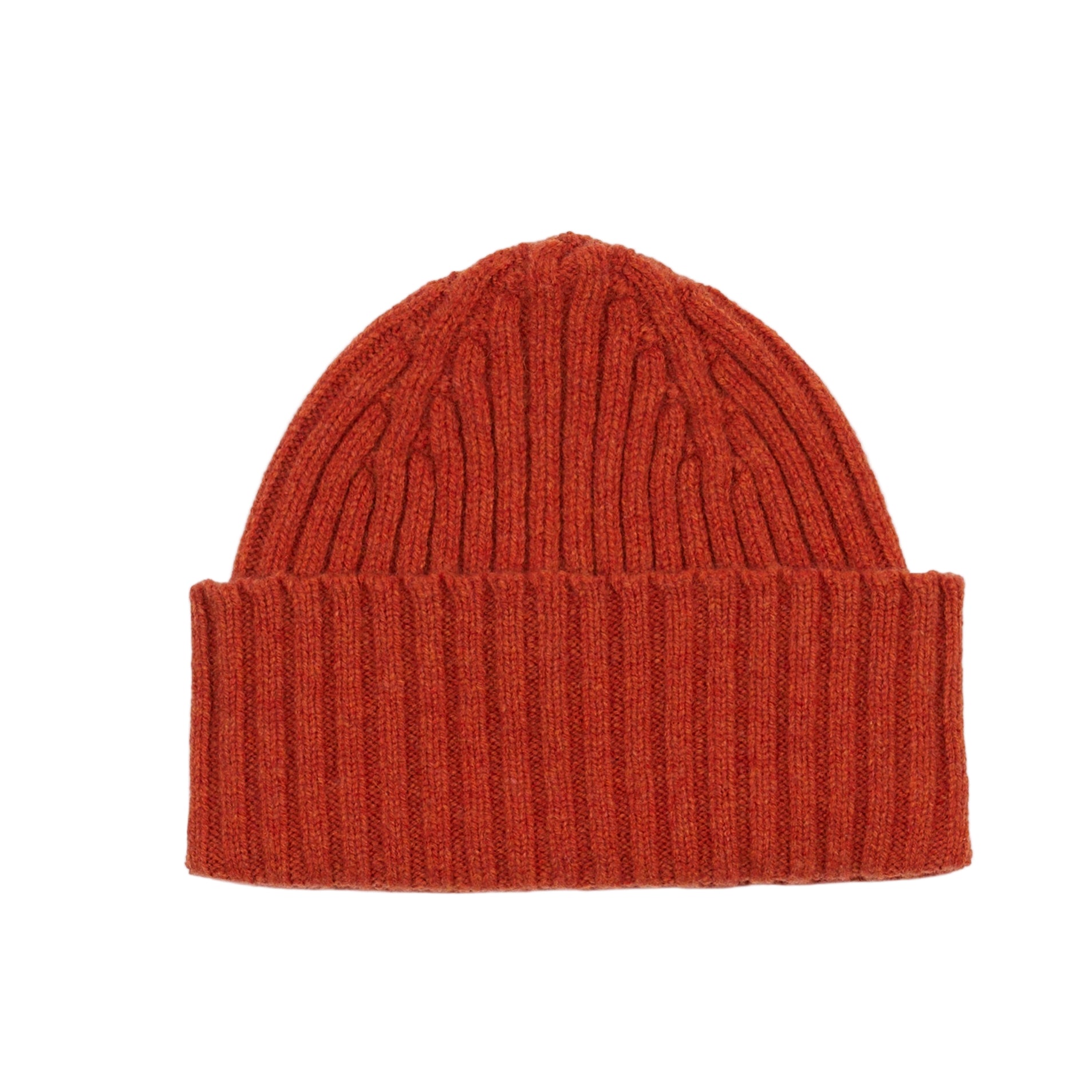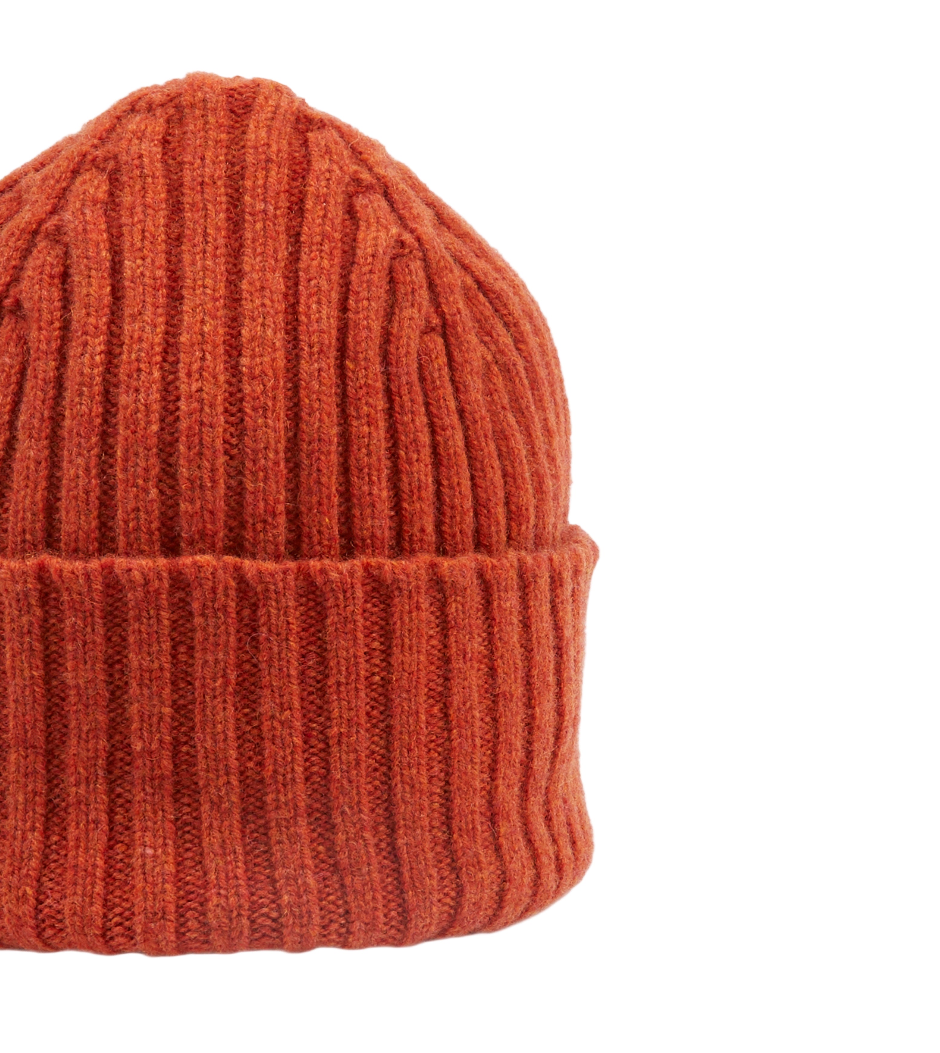 Drake's Lambswool Ribbed Knit Beanie Hat Orange