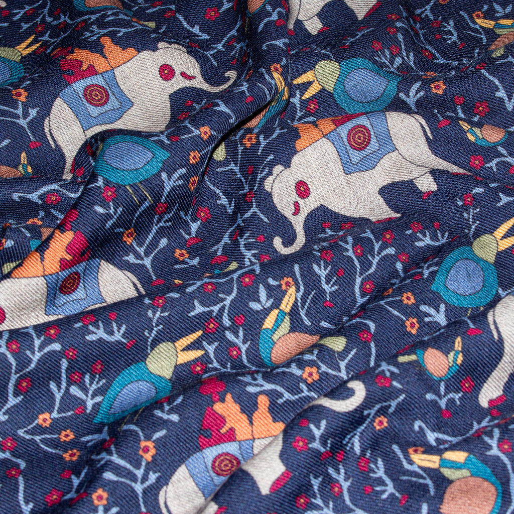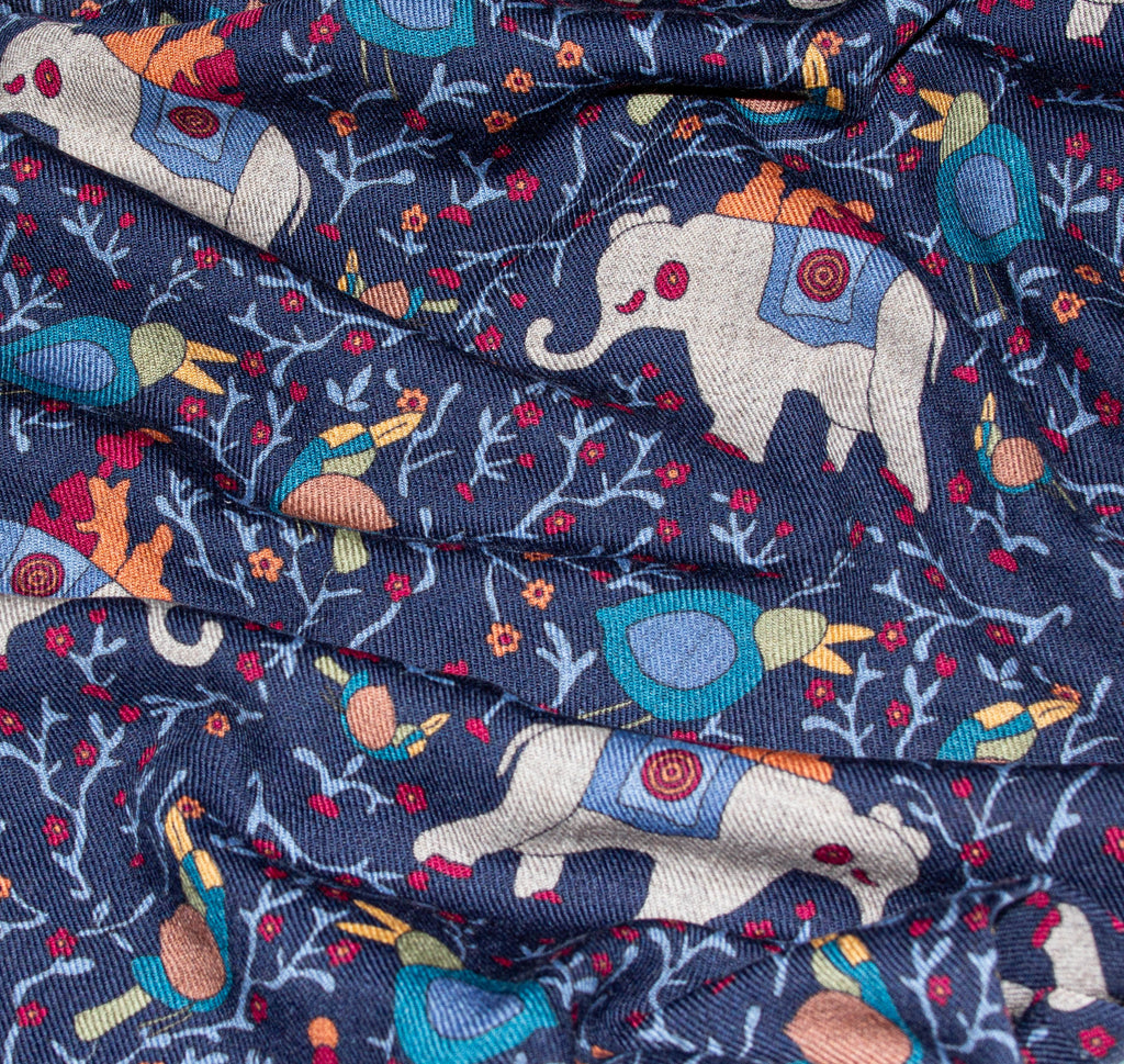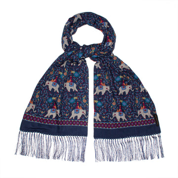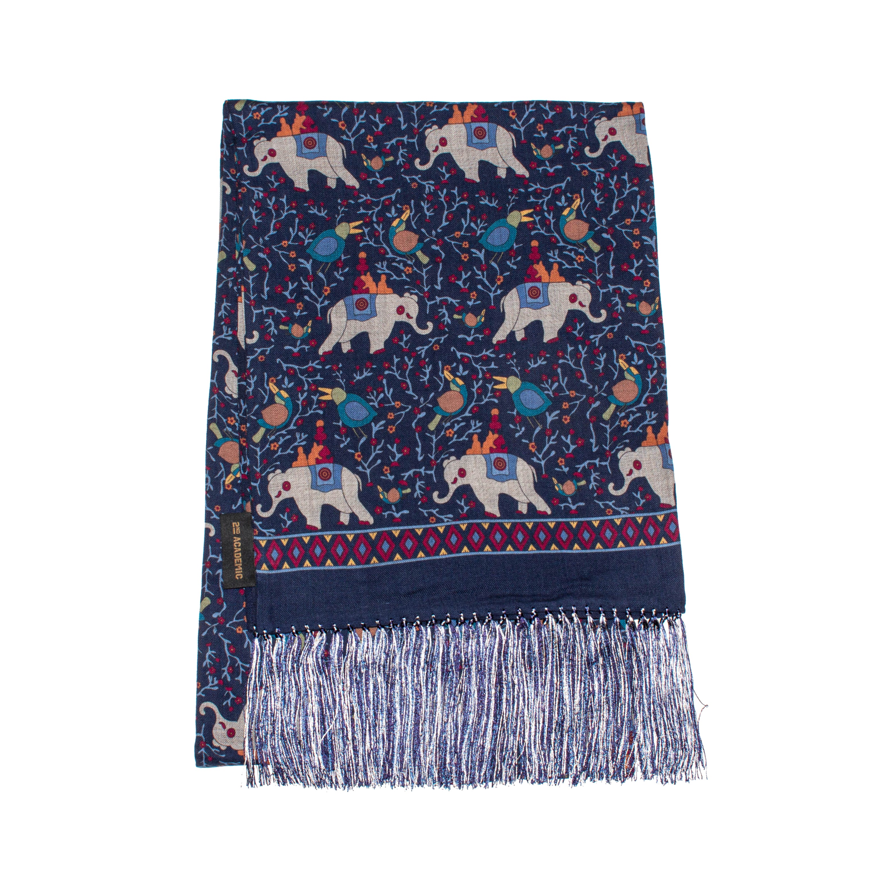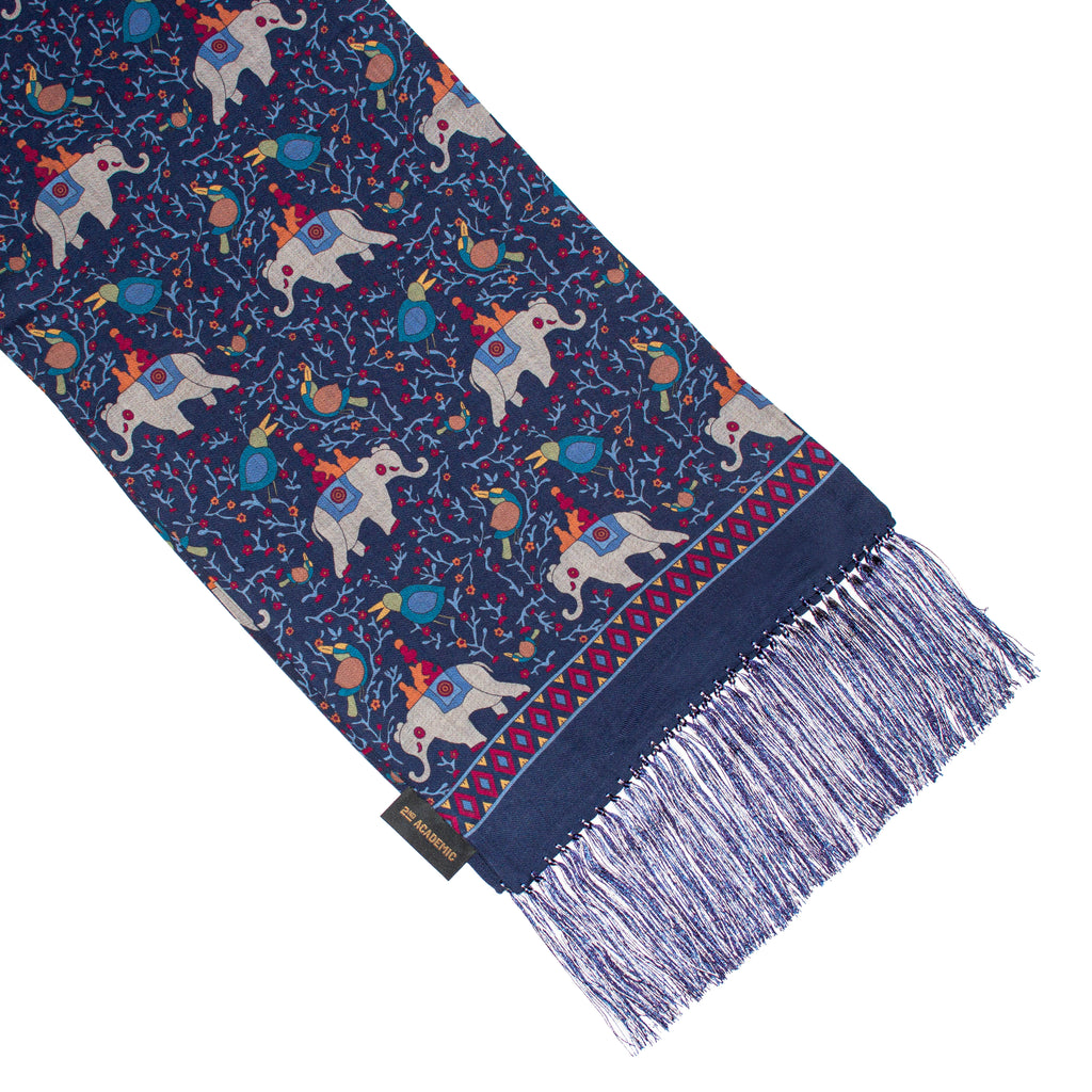 2nd Academic Made in Italy Elephant Print Scarf Navy