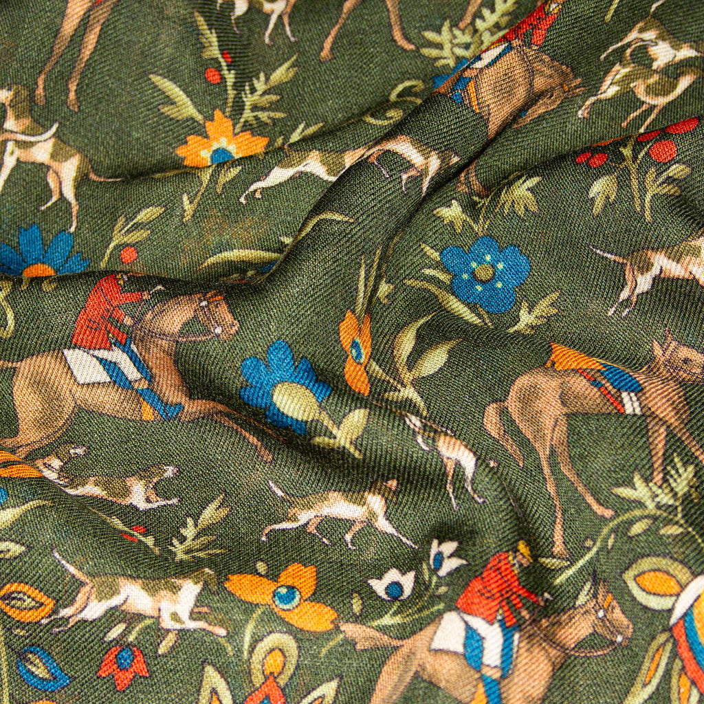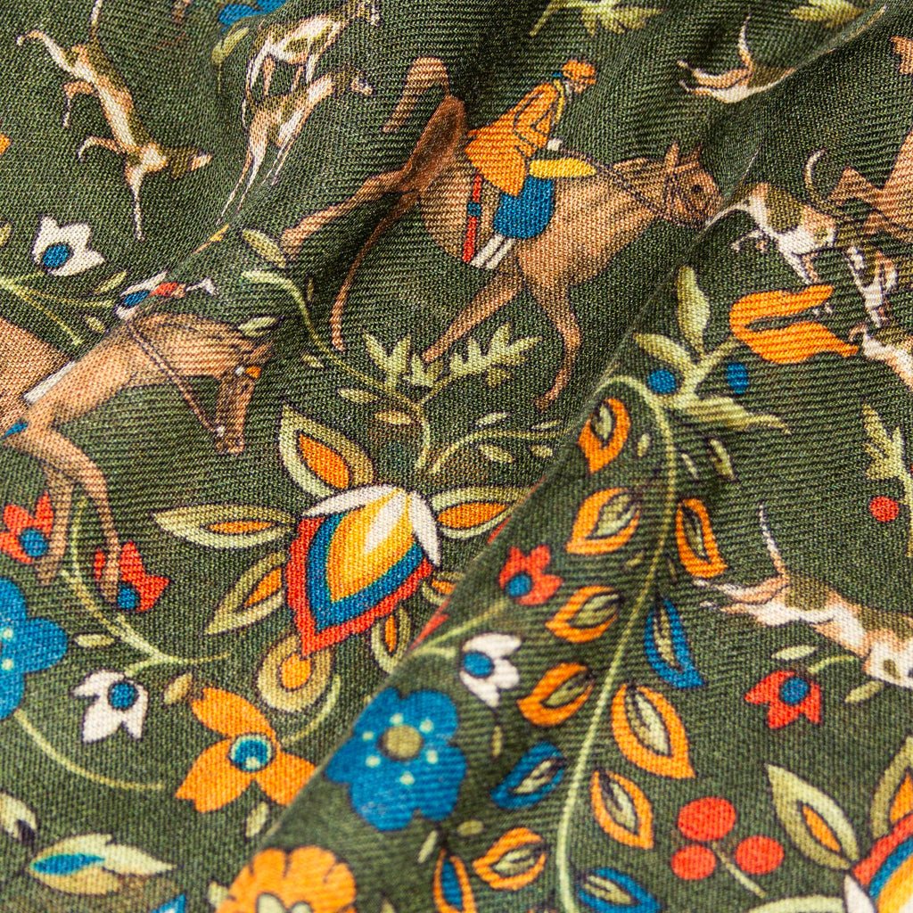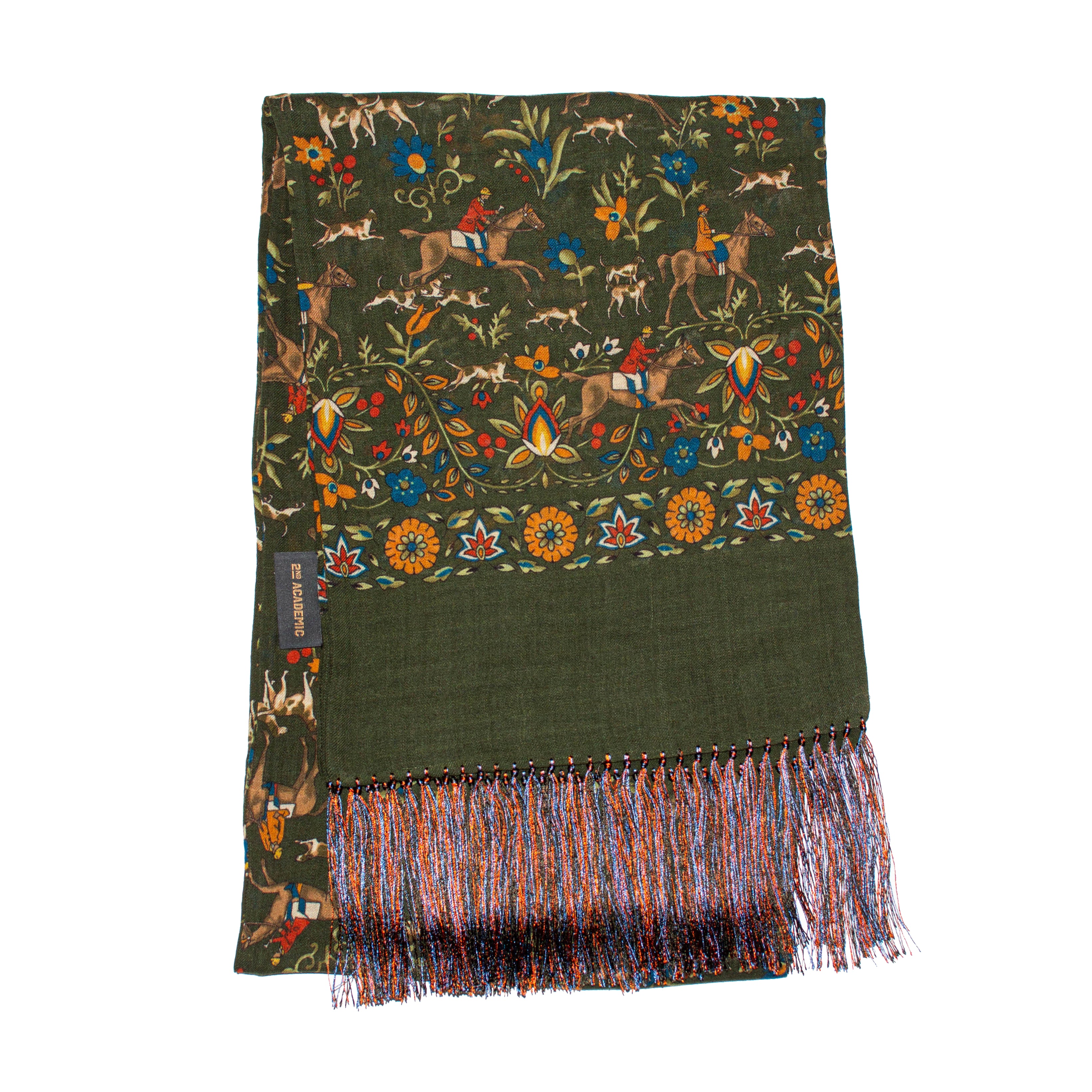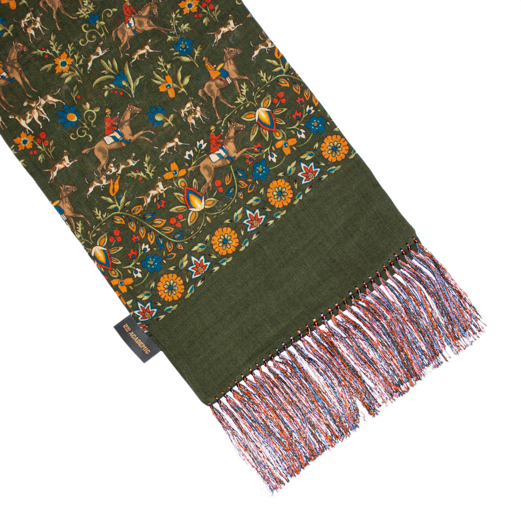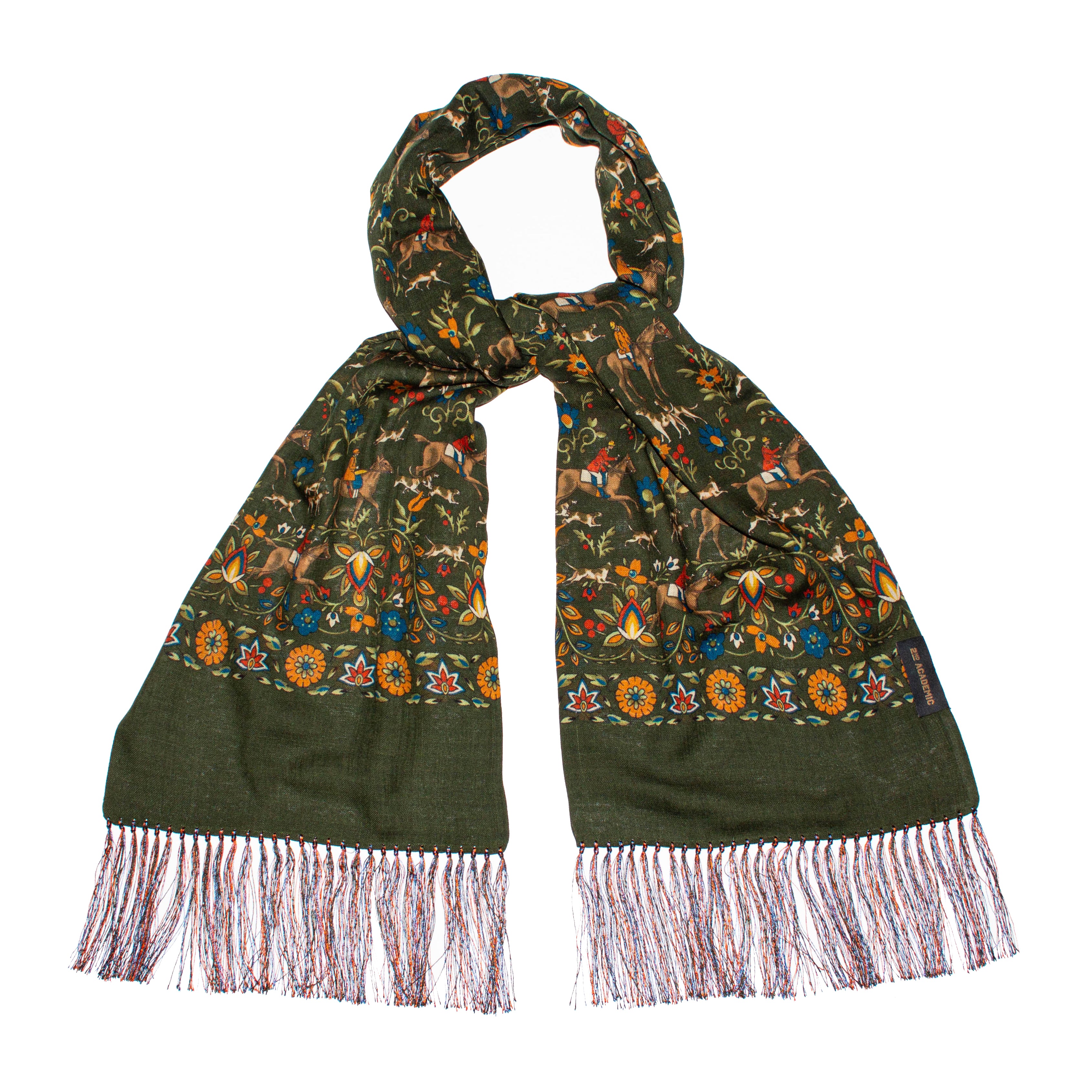 2nd Academic Made in Italy Huntsman Print Scarf Olive Green