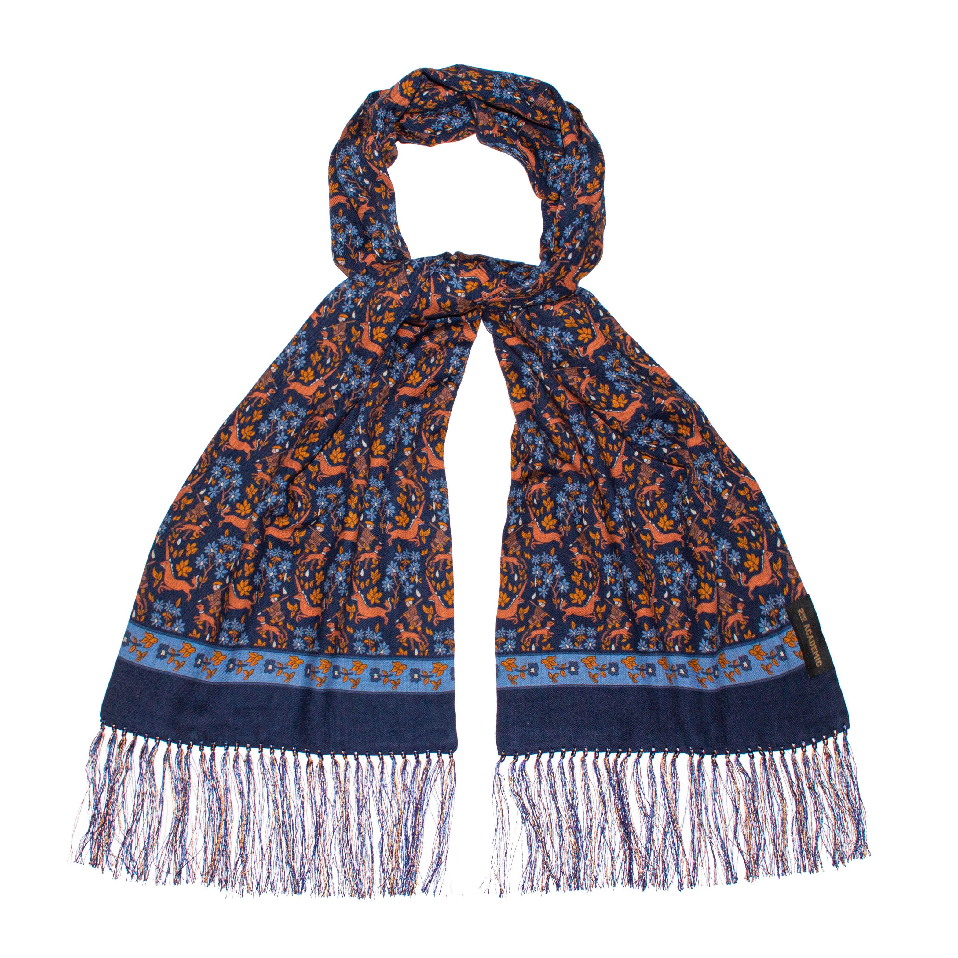 2nd Academic Made in Italy Unicorn Print Scarf Navy