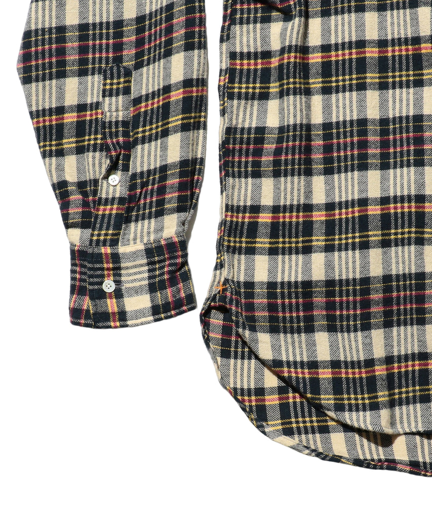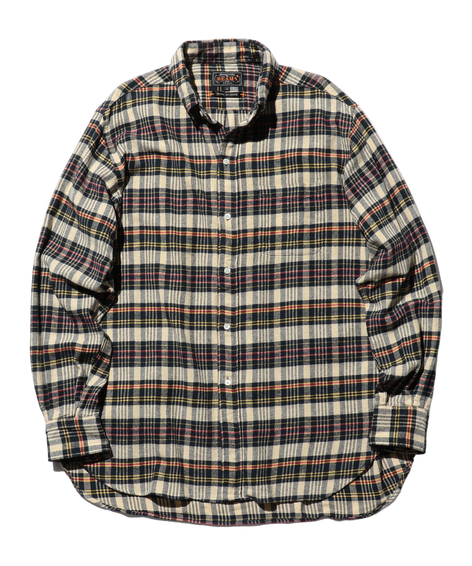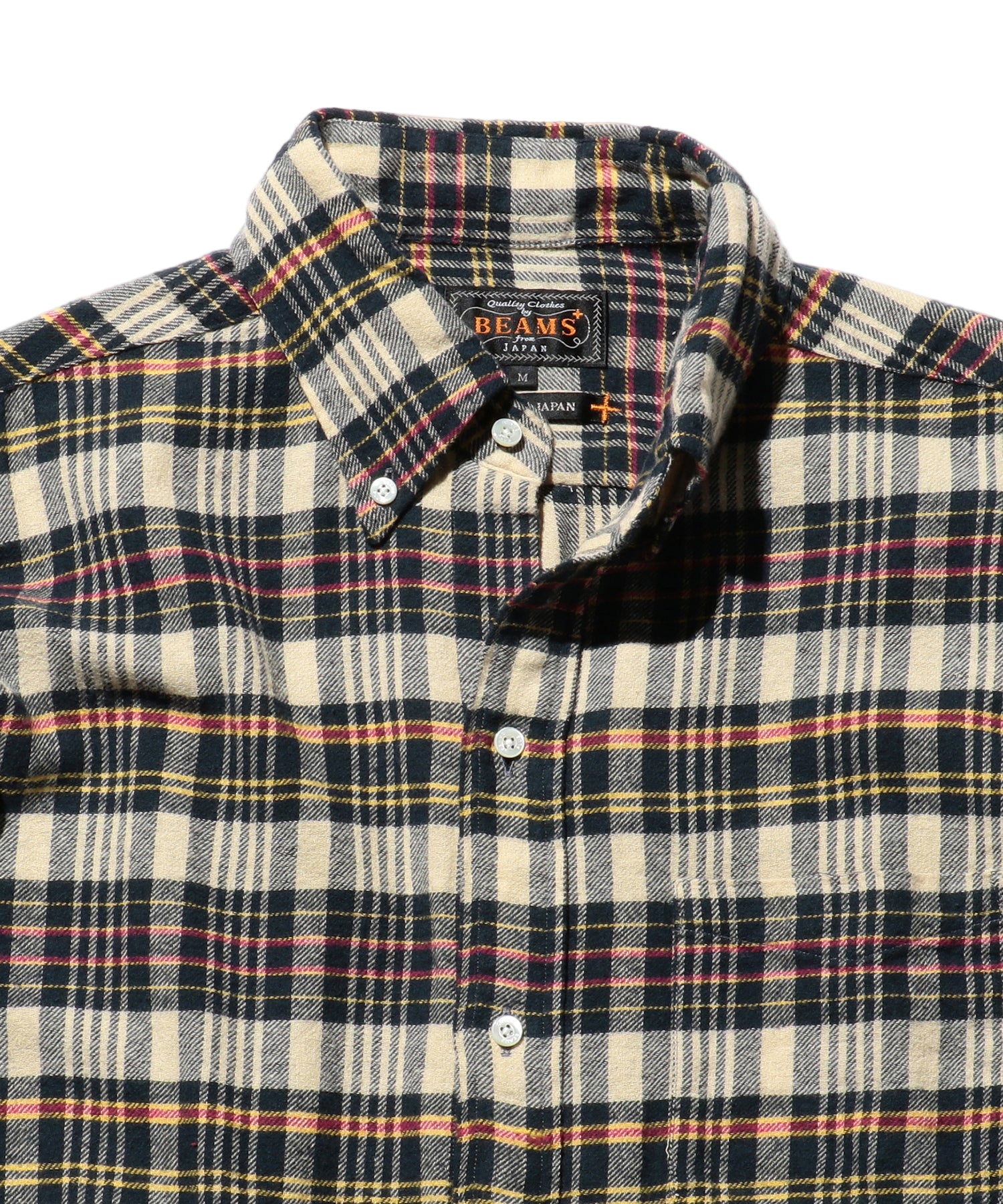 Beams Plus Button Classic Fit Indian Flannel Plaid Shirt Beige