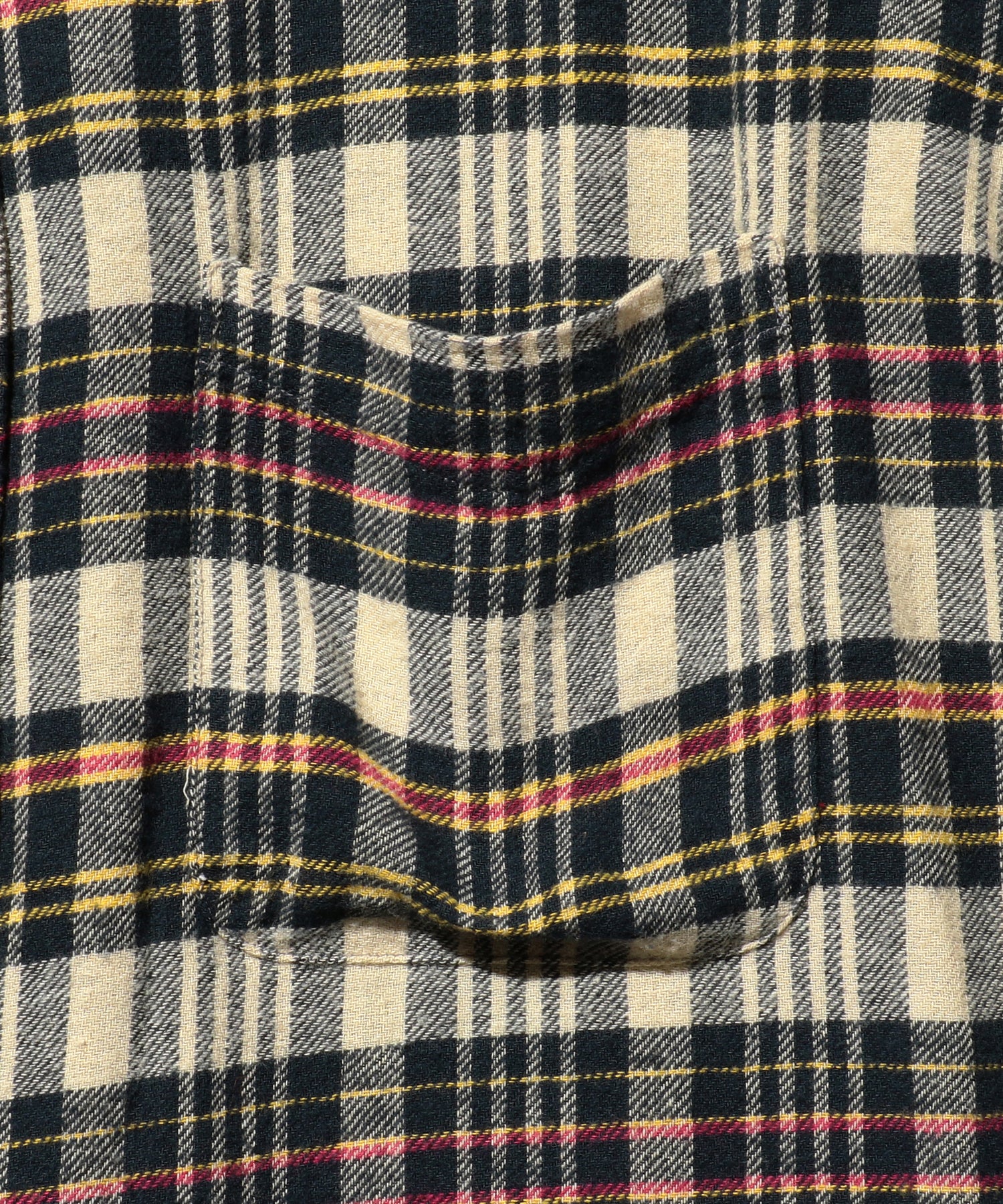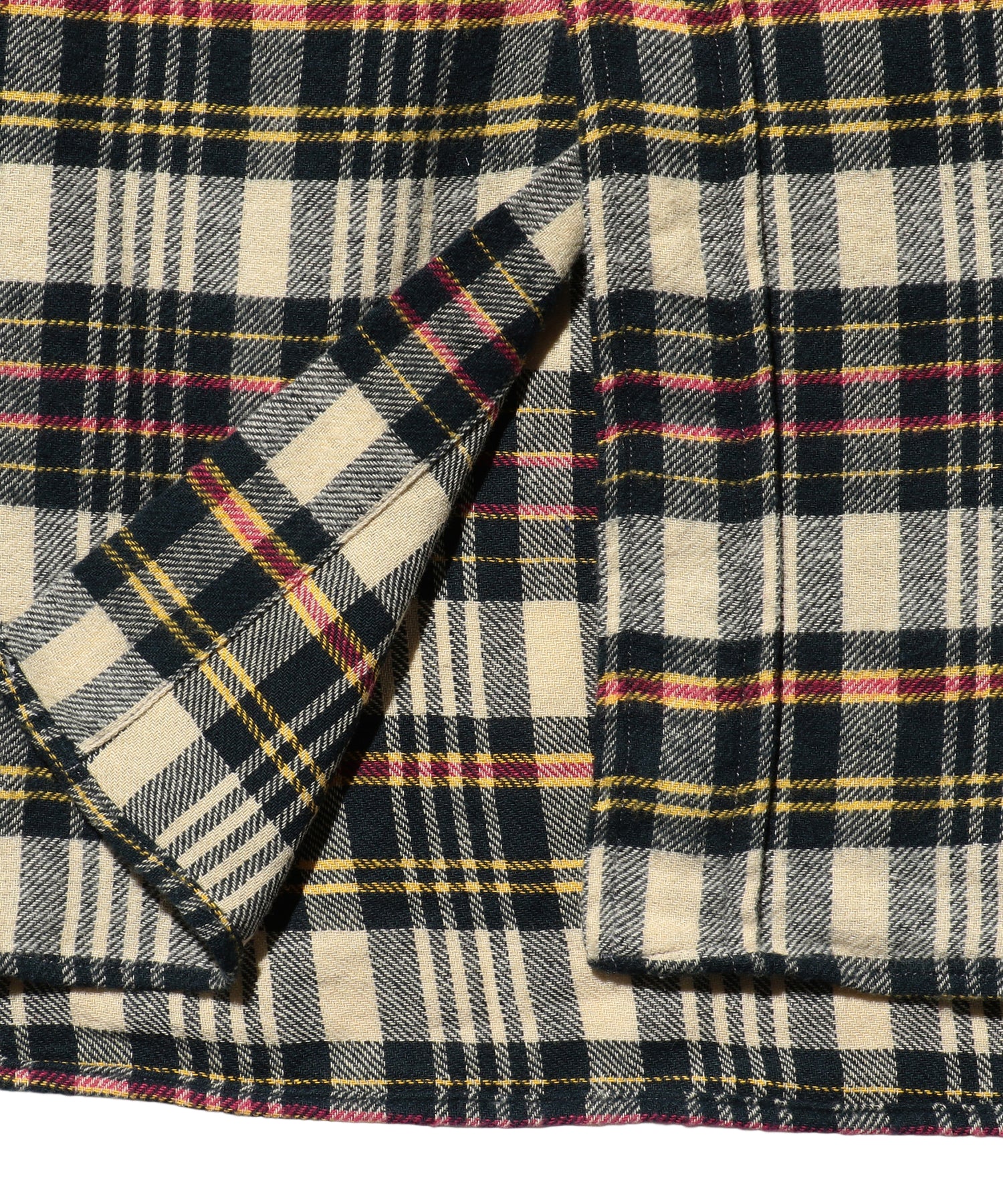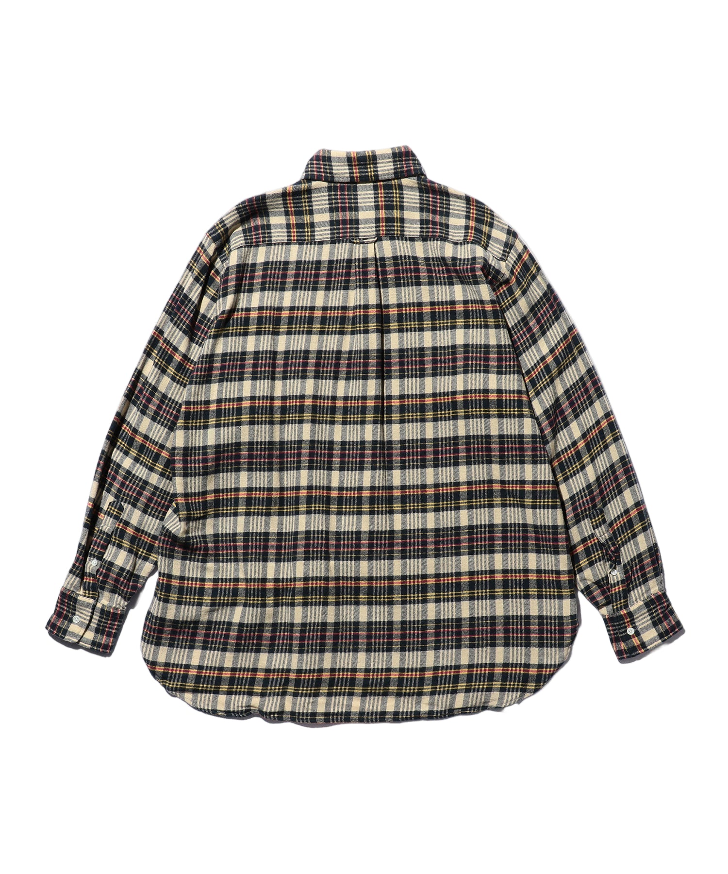Beams Plus Button Classic Fit Indian Flannel Plaid Shirt Beige