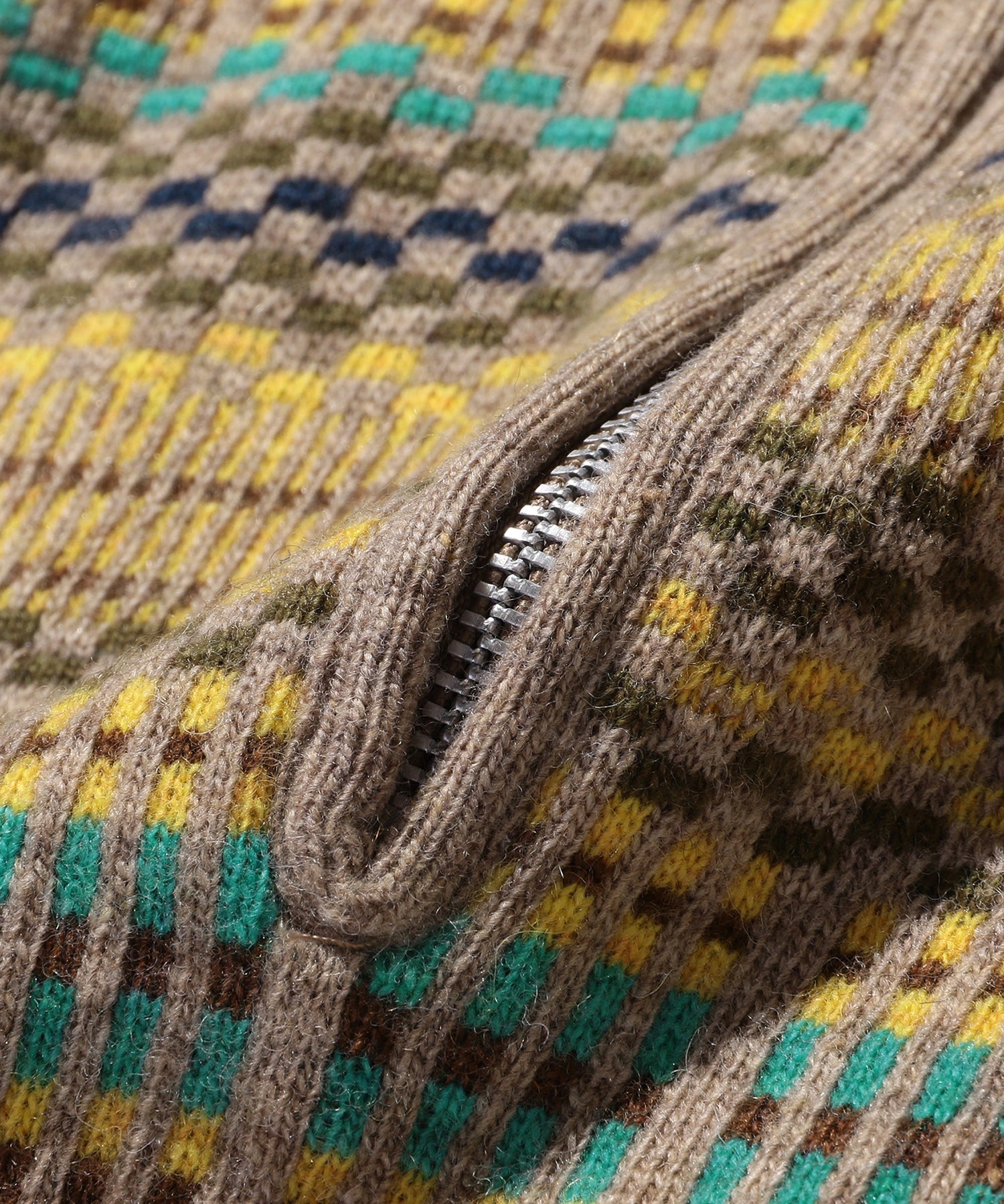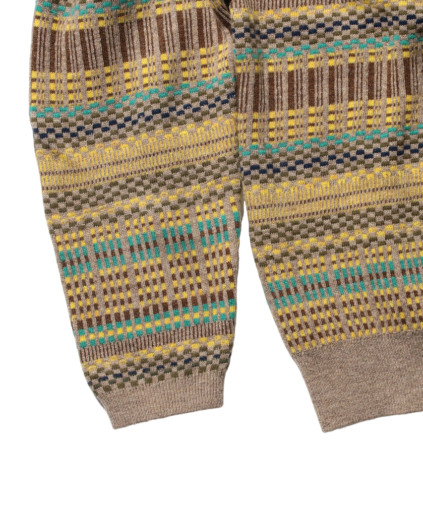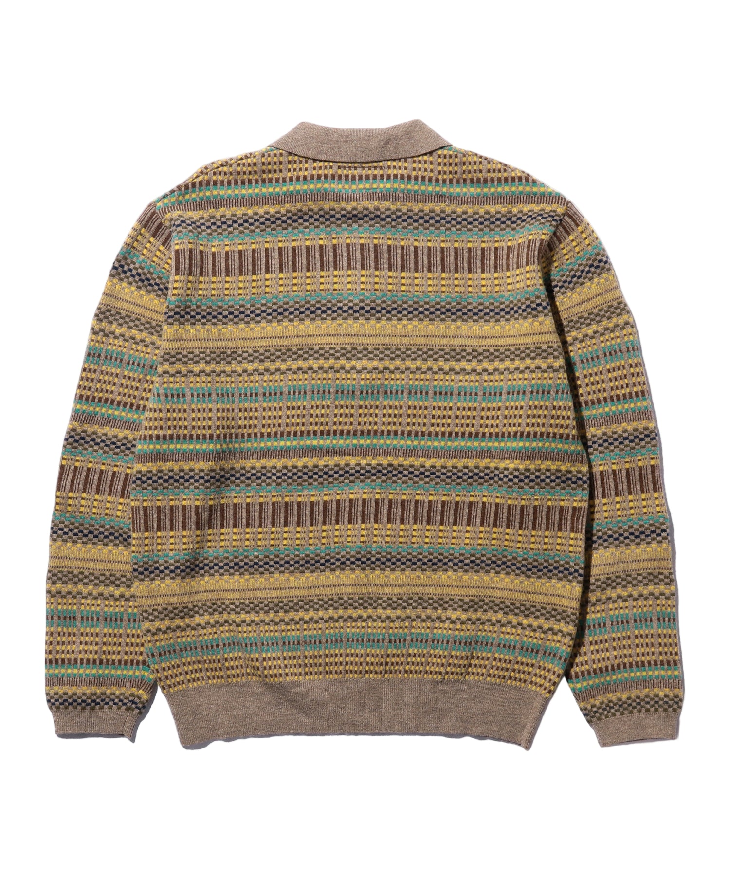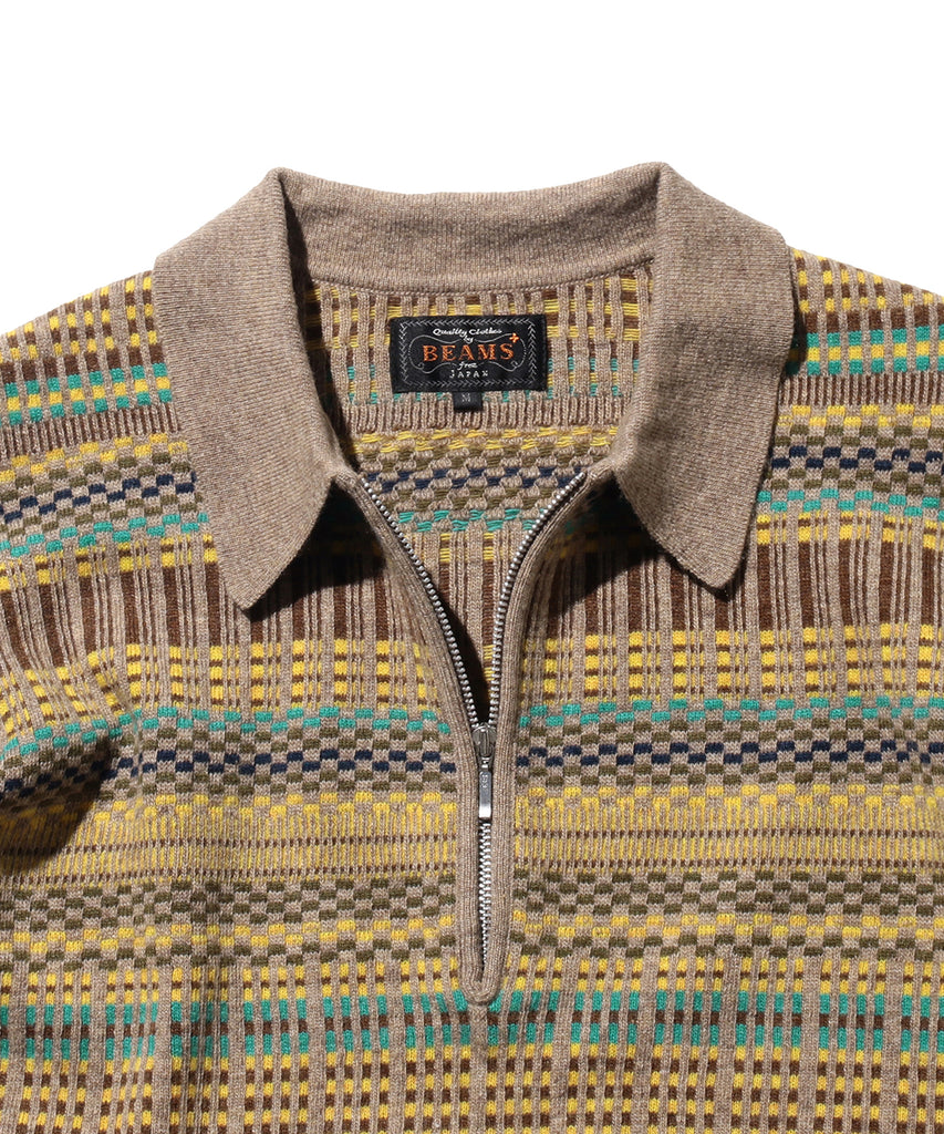 Beams Plus Half Zip Knit Polo Jacquard Khaki