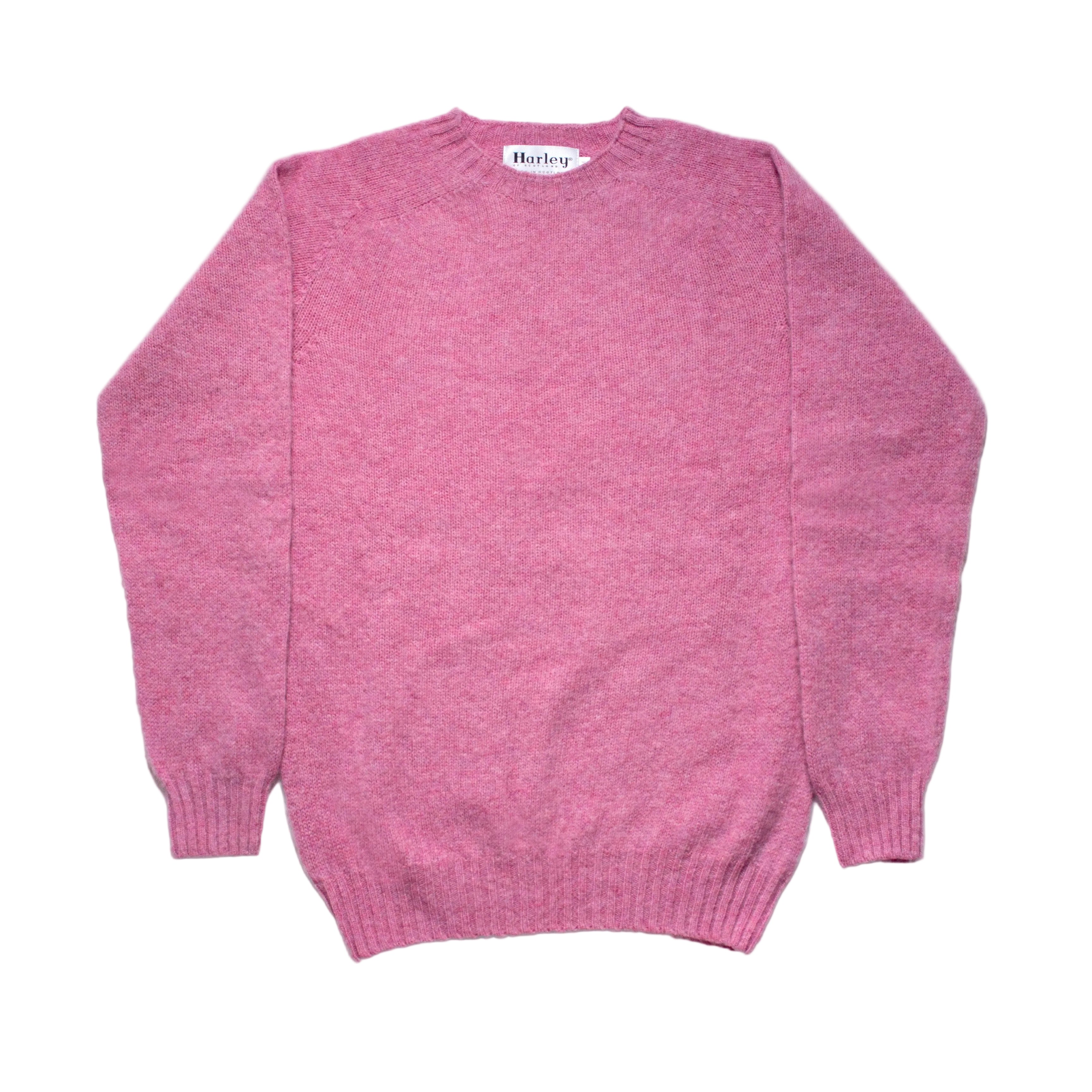 Harley Of Scotland Shaggy Dog Shetland Wool Crew Neck Jumper Pink