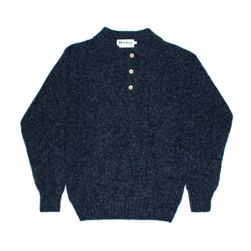 Exclusive to 2nd Academic, this shaggy dog Eton collar polo has been made with the same quality since the 1970s in the Shetland Islands in northern Scotland, the home of incredibly light and warm knitwear. It is made from 100% pure Shetland wool and is called "Shaggy Dog" because it resembles a fluffy muku dog. The surface is raised by scratching it with the thorn of a thistle (Scotland's national flower) to create a layer of air, which is said to have reduced the cold. The knitted surface is deliberately brushed to give a soft, fluffy look. The brushed surface allows plenty of air between the fibres to create warmth and keep out the cold. It is also very durable, light, very soft and breathable.