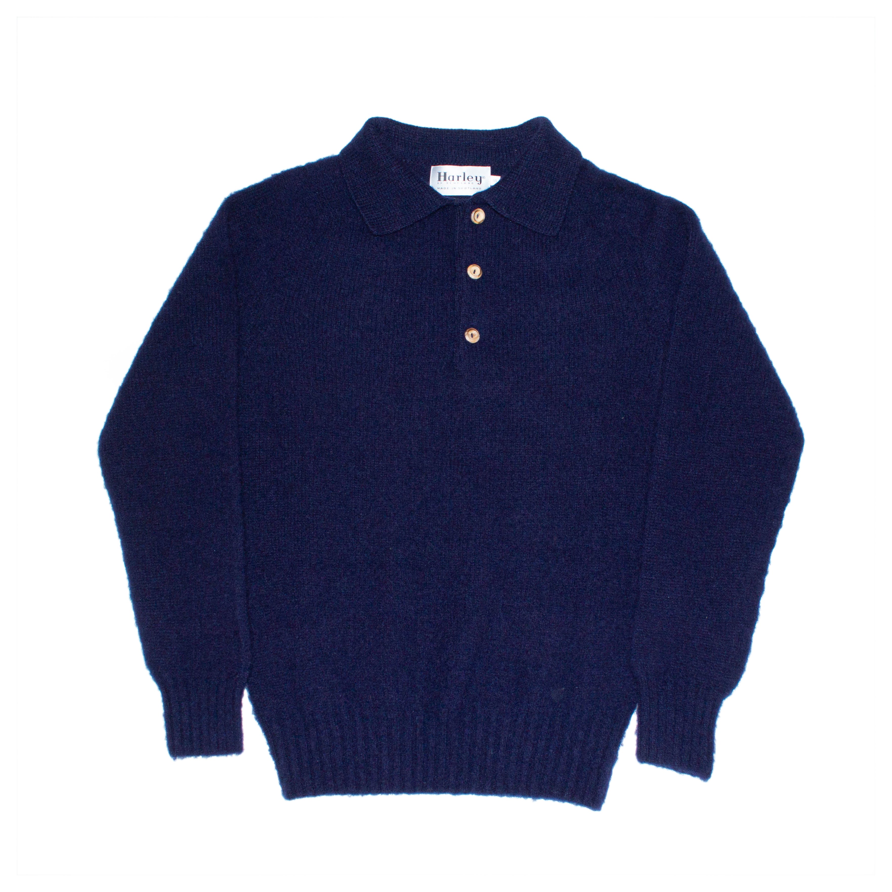 Harley Of Scotland Shaggy Dog Shetland Wool Eton Collar Polo Sweater Navy